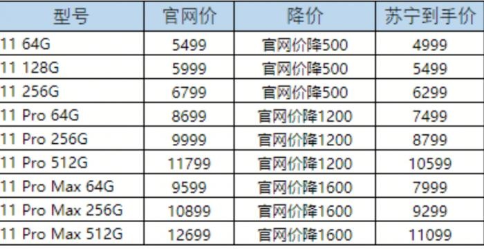 4月2日,苏宁手机官方微博表明,iPhone11发动全线降价,最高降价力度到达1600元,iPhone11最低到手价4999元。