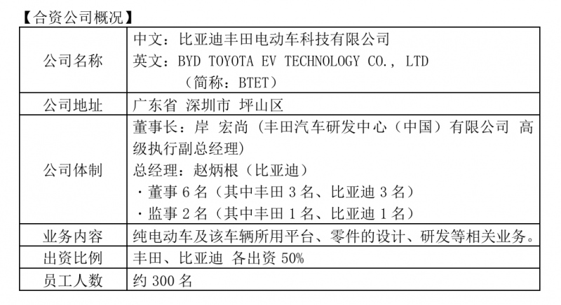 据了解,来自丰田的岸宏尚出任合资公司董事长,来自比亚迪的赵炳根出任总经理。(静静)