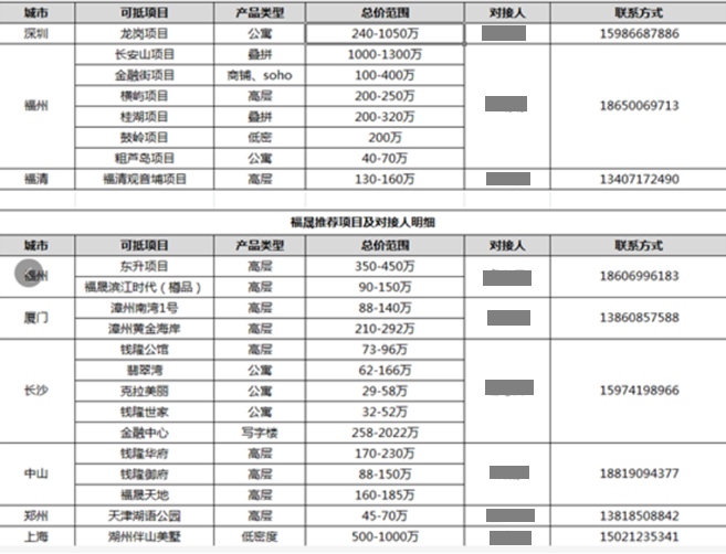 福晟的抵购房项目 材料来历:受访者供给