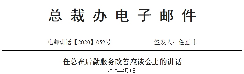 据华为心声社区,4月14日,华为对外公开了2020年4月1日任正非在后勤服务改进座谈会上的说话,任正非在说话中说,“斗争的意图是什么?过美好日子,公司一向倡议在思想上艰苦斗争,没有说过要在日子上艰苦。”
