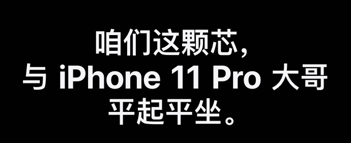 不再是“让妈妈高兴,开了又开”这样自说自话的“苹果式中文”,而是“我们这颗芯,与iPhone 11 Pro大哥等量齐观”这样如话家常的亲民白话。