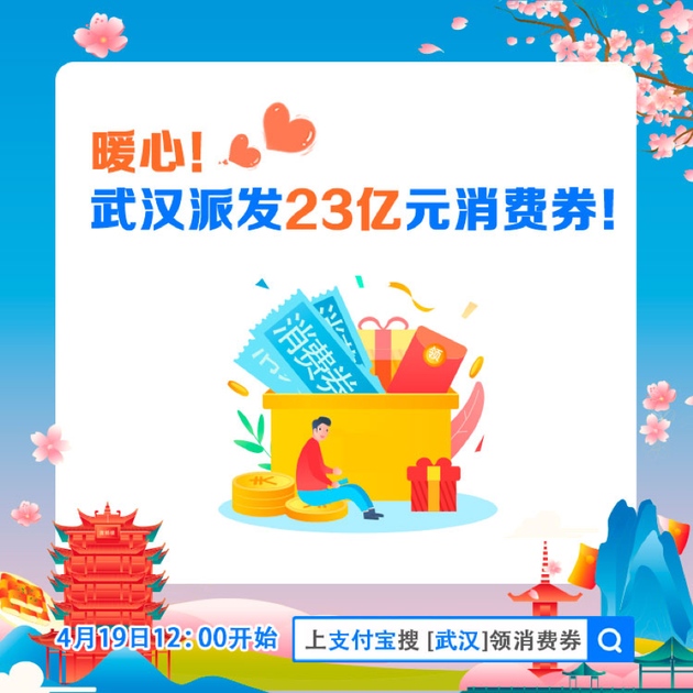 新浪科技讯 北京时刻4月17日清晨音讯,跟着离汉离鄂通道管控免除,复工复产,提振经济,居民日子逐渐康复正轨已成为武汉下一步安排要点。今天,武汉宣告,4 月 19 日起至7 月 31日将经过付出宝等渠道发放23亿元消费券,其间5亿为政府出资,剩下18亿由渠道匹配,定向鼓舞本地顾客,扶持武汉商家,拉动线上、线下消费。