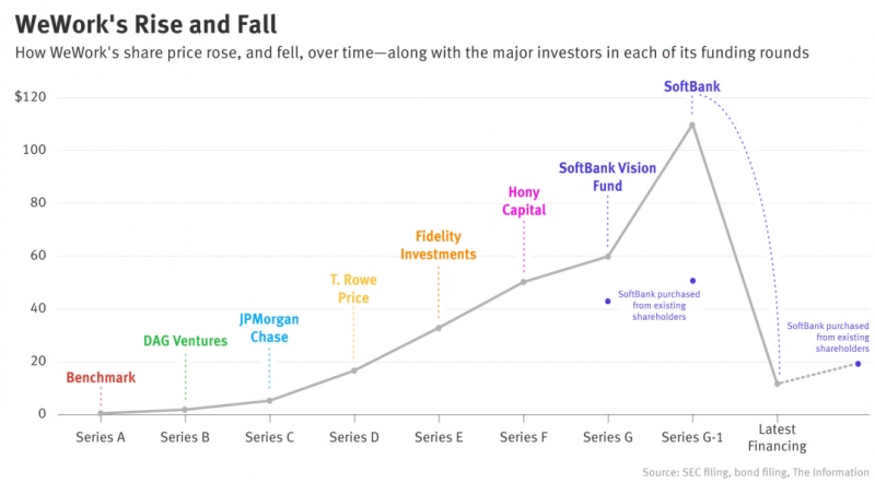 WeWork 的从天堂到阴间之路图片来自:The Information
