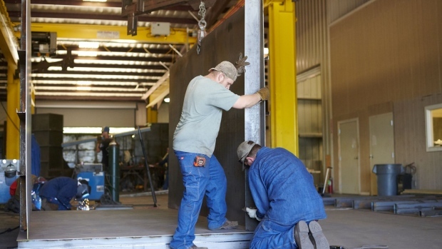 在美国德克萨斯州默奇森的Rising S公司制作的奢华钢铁地堡内,工人们正在制作温室