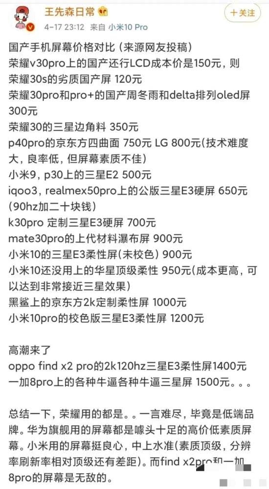 在这几天的时间里网络上忽然呈现了一大批相同模子里刻出来的文章。一群所谓的“数码博主”以及和数码都没有联系的自媒体都在转发一篇名为“国产手机屏幕价格比照”的稿子。其间相当大的一部分都是所谓的华为远古“黑料”,而这些黑料都是话诶早现已澄清了的工作。而这其间最有影响力的一个博主是一个具有47万粉丝的大V博主,不过他现已删去了这篇微博,可是删去了就行了吗?忘记了互联网是有回忆的吗!