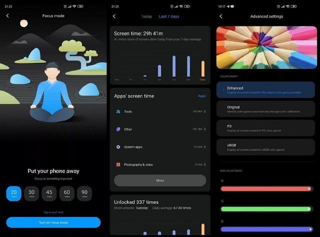 据之前XDA用户曝光的MIUI 12 UI截图显现,MIUI 12 将会全体得到简化,新增漆黑形式及屏幕使用时间设置、专心形式等,不过除了新增功用、UI的改动,信任底层的优化更令人等待。