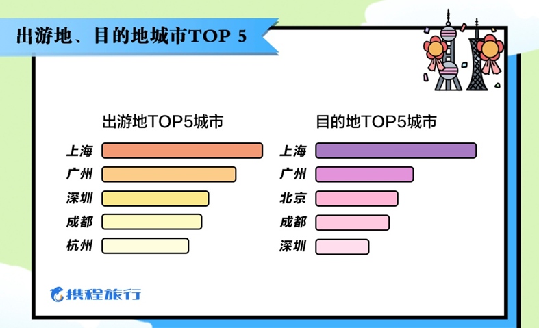 现在,客源地排名前十的城市,依次为上海、广州、深圳、成都、杭州、南京、北京、重庆、西安、长沙;而排名前十的目的地依次为:上海、广州、北京、成都、深圳、杭州、南京、西安、重庆、长沙。