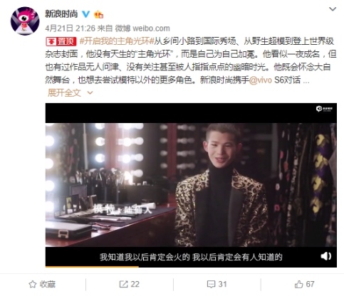 最近,新浪时尚与vivo S6联合制作了关于陆仙人的采访视频,这支视频讲述了陆仙人如何通过努力开启“主角光环”,走向更大舞台的故事。