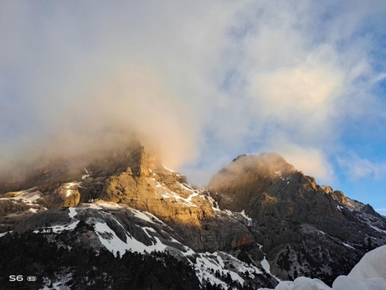 用 vivo S6 的4800万像素超清主摄,皑皑白雪、层层白云都被清晰的留存下来,细节清晰,噪点全无,即使放大观察雪的细节依旧完美,远处的雪山也是细节清晰。
