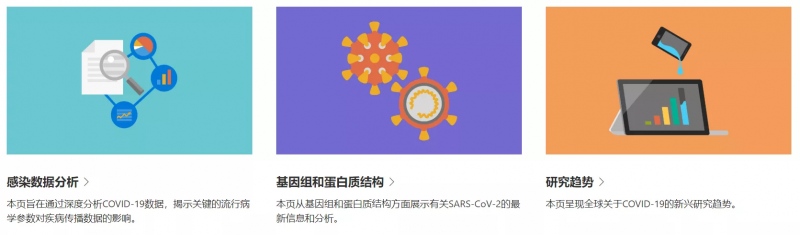 COVID Insights 网站主要包含感染数据分析、基因组和蛋白质结构、研究趋势三大板块,以可视化和互动的方式直观展现了疫情在不同国家和地区的传播特性、引起疫情的病毒 SARS-CoV-2的病毒学分析结果,以及全球最新的相关研究热点。网站使用的所有数据均来自约翰霍普金斯大学、美国疾病控制与预防中心、GISAID 等机构的官方发布。基于这些公开数据,研究员们利用先进的技术挖掘疫情数据背后隐藏的规律和洞察,为进一步拓展对疫情的思考提供有价值百科的参考。
