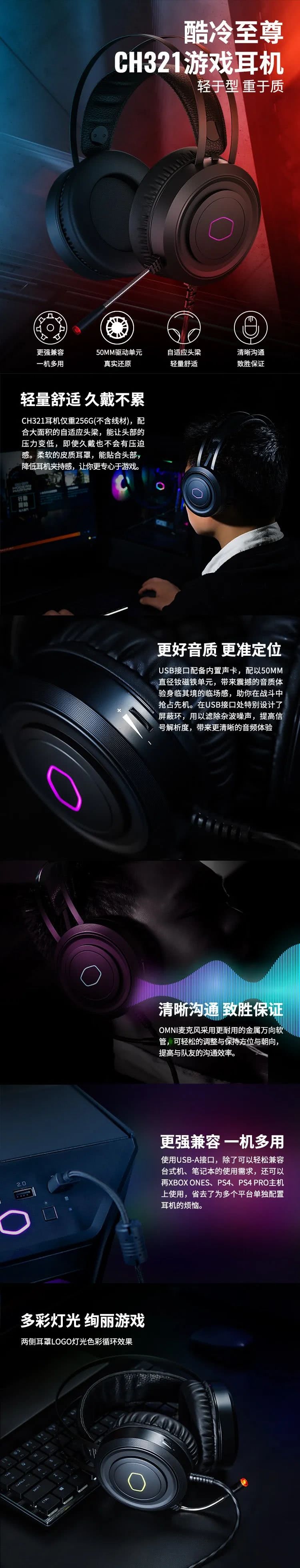 酷冷至尊CH321 电竞耳机,采用了超轻量化规划,力度适中,耳罩柔软,佩带舒适;调配的50mm驱动单元和内置声卡,带来均衡的三频;装备防环绕线缆,用起来非常便利。既能够打游戏,也能够拿来体会影音的入门级游戏耳机,对玩家来说,是一个一举多得的挑选