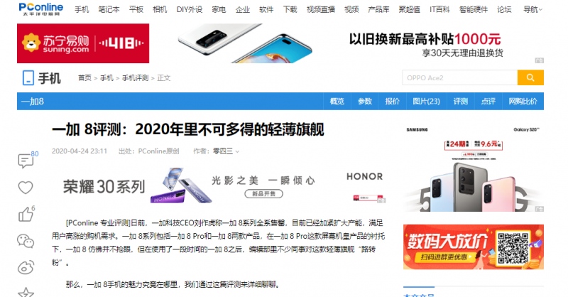 知名数码媒体《太平洋电脑网》赞叹一加 8 在拥有旗舰硬件的同时还花了很多心思在整机的工业设计上,是“2020年里不可多得的轻薄旗舰”,带来“比好更好的屏幕、轻薄机身和优秀手感”。