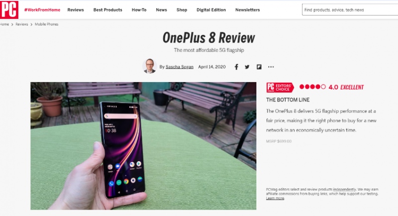 老牌科技杂志《PCMag》一句话总结了一加 8 作为5G旗舰的实力,认可一加 8 是一款“5G 超值旗舰”。