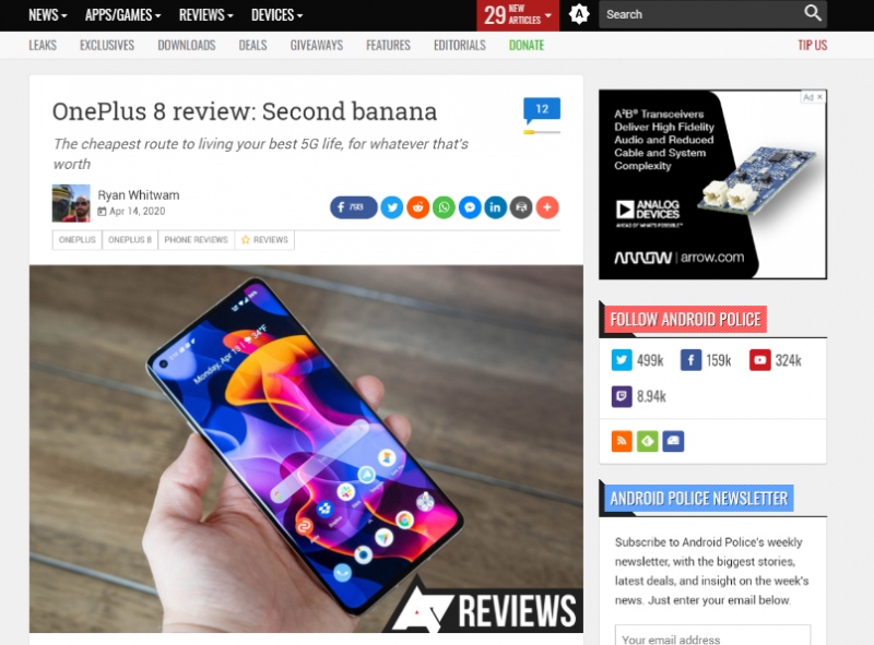 知名科技媒体《AndroidPolice》在体验一加 8 后,也对一加 8 的5G实力表示了赞叹,他们指出一加 8 是“以超值的方式,享受5G生活”。