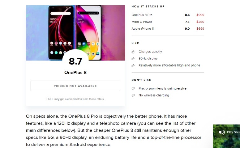 另一家知名科技媒体《CNET》也指出了一加 8 领先行业的旗舰配置为用户带来了全新的流畅体验,他们表示:一加 8 仍然保持足够旗舰的规格,带来一流的安卓体验,例如5G,90Hz屏幕,长续航和顶级处理器。