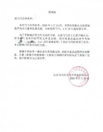 李国庆还对协作伙伴表示感谢和抱歉,夫妻大股东之间的经济纠纷与职工和客户无关,绝不影响当当正常运营。
