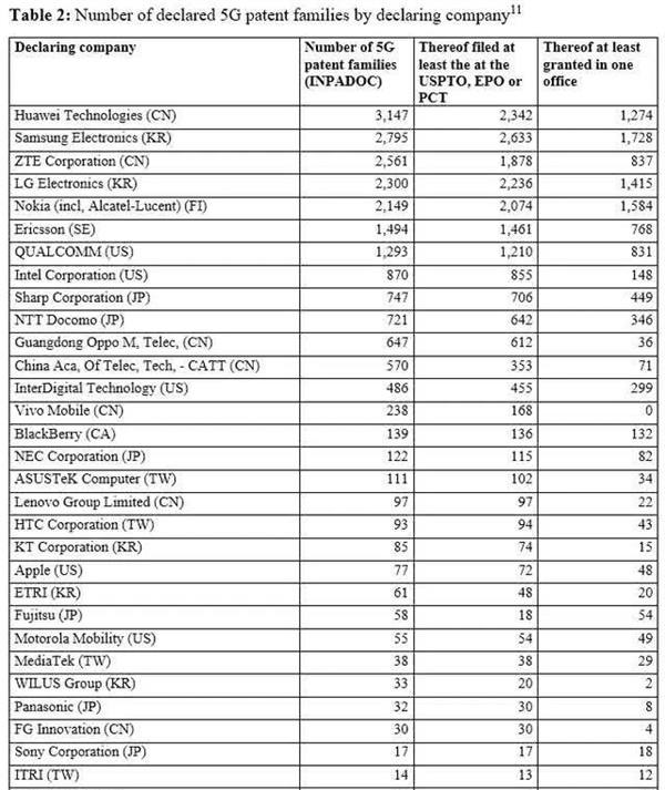 日前,德国的专利数据公司IPlytics发布了一份关于“5G规范专利声明的实情查询”陈述,截止2020年1月1日,全球共有21571个5G规范专利项声明,其间华为具有3147项排名榜首,这以后分别是三星(2795)、中兴(2561)、LG电子(2300)、诺基亚(2149)和爱立信(1494)。