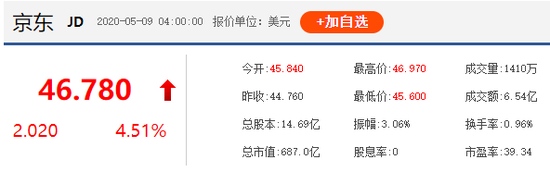 京东于2014年5月再美国纳斯达克上市,距今已有6年之久,到5月9日美股收盘,集团总市值到达687亿美元。该公司的事务较为多元化,触及零售、金融、物流、健康、人工智能等范畴。