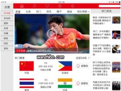 玩直播体育平台是一个掌上网络直播平台随时随地关注、同一时间不同地点发生的有趣体育新闻赛事尽在你的手机内呈现。主要功能通过“体育直播”不仅可以观看现场,还能关注有兴趣的头条新闻,时刻满足你内心的体育细胞的热血情感,更有你喜爱的明星名人网络分享他们所经历的体育经验与趣事。关注“体育直播”可以让你成为身边朋友中的体育新闻最新动态小达人!