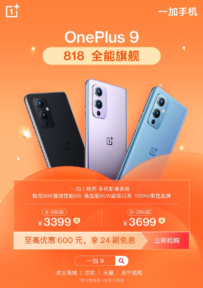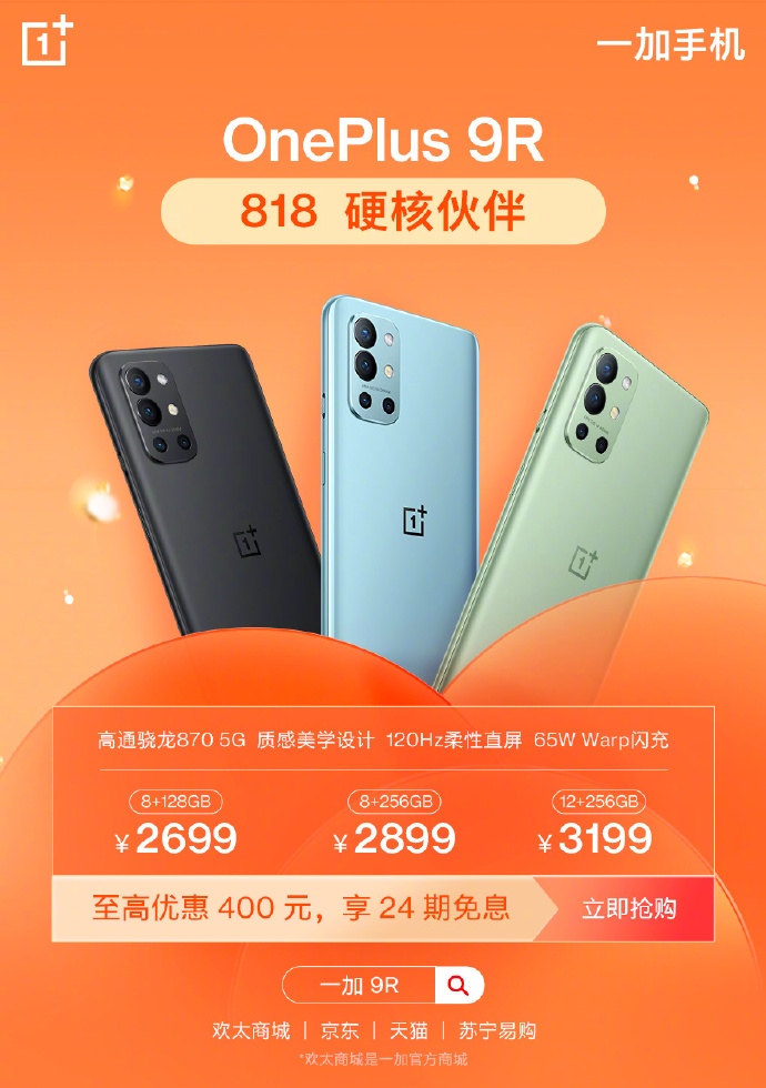 8月15日,一加手机公布了818终极购机优惠政策,8月15日-8月18日期间,一加9至高优惠600元,3399元起;一加9Pro至高优惠700元,4499元起;一加9R至高优惠400元,2699元起。以上机型8月15日-17日均有多期免息,8月18日直接24期免息。此次购机活动覆盖一加全品类产品,优惠力度空前,正是购入一加产品的绝佳时机。