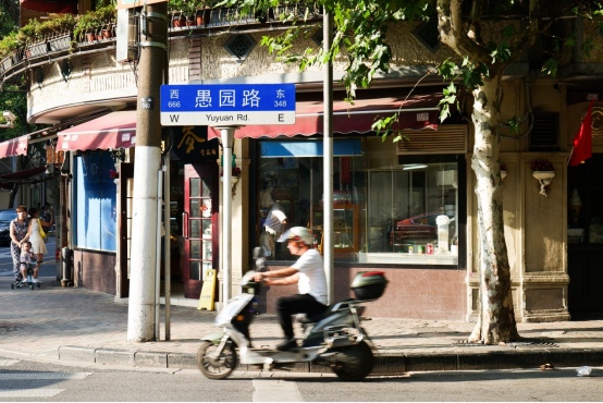 我扫街基本会用光圈优先,大部分场景基本在光圈F9就OK,不过具体还是以环境为基础来调整。当时是国庆假期最后一天,我就和朋友去愚园路到静安寺附近走走转转,相机内置不少滤镜,不过我个人习惯是直接调整照片格调,选择“生动”,这就会在原本还原自然的色彩上加上更浓郁的效果,比较适合扫街的时候使用。这种扫街照片最要的无非是两点,第一点就是色彩要舒服,当然也可以后期大改,但个人还是倾向于「稍微调整就好」。