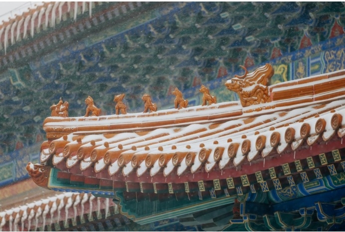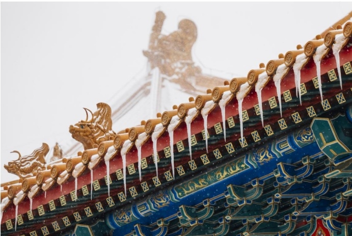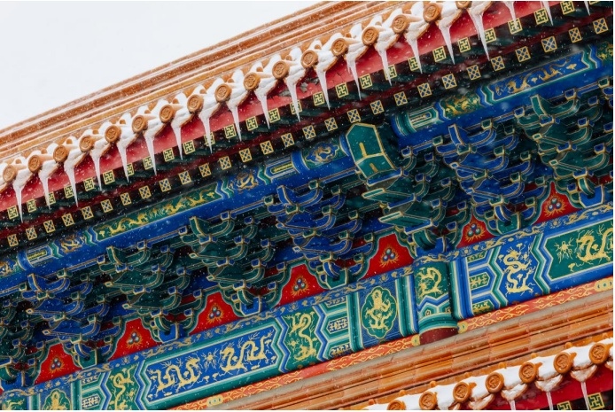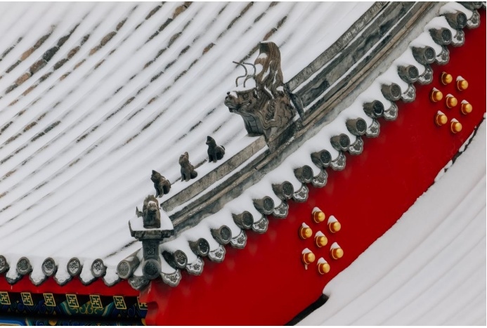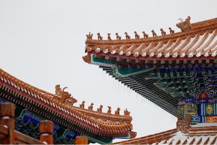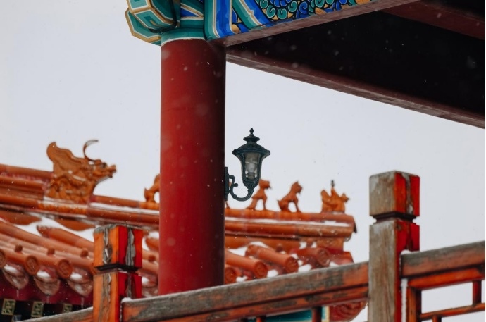 其实古建除了色彩丰富,线条也非常的丰富,并且富有立体感,这也是为什么古建拍摄会那么迷人的原因,大雪纷飞,五彩斑斓,美景当前,唯有按下快门,以解忧愁。松下LUMIX S 70-300mm F4.5-5.6 MACRO O.I.S. 这支镜头的畸变控制能力是非常值得称赞的,对于古建这种线条感非常明显的拍摄题材,并不会出现常见的枕形畸变的现象,所以拍摄出来的照片,我个人感觉很”板正“。