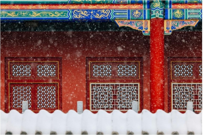 说实话北京这场雪下的还是很大的,以至于我到达拍摄地之后雪还在继续,虽然意境很美,但是大雪对相机的成像以及对焦系统是一个非常大的考验,下雪的时候,有着丰富色彩的古建会变得暗淡很多,由于漫天飞舞的雪花,会使得相机出现误判或者对焦失误的现象,所以在大雪中拍摄说实话更大的考验还是相机后面的自己。