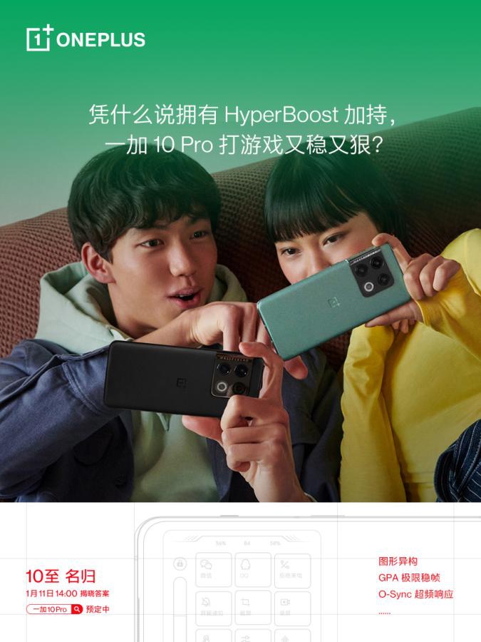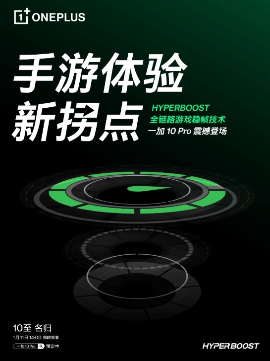 一款真正意义上的最强性能旗舰,游戏体验一定要是最顶尖的,HyperBoost 全链路游戏稳帧技术将为手机游戏体验提供一种更优化的解决方案。一加 10 Pro“10至名归”新品发布会将于1月11日14点召开,OPPO商城、京东、天猫、苏宁、一加授权零售店现已开启预约,更多惊喜发布会见。