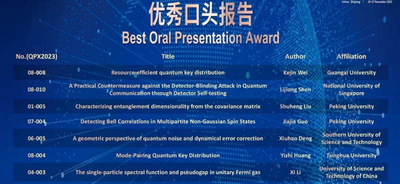 此外闭幕式还进行了 “最佳口头报告”奖、“最佳海报张贴”奖、“量子光子学优秀成果”奖的颁发。